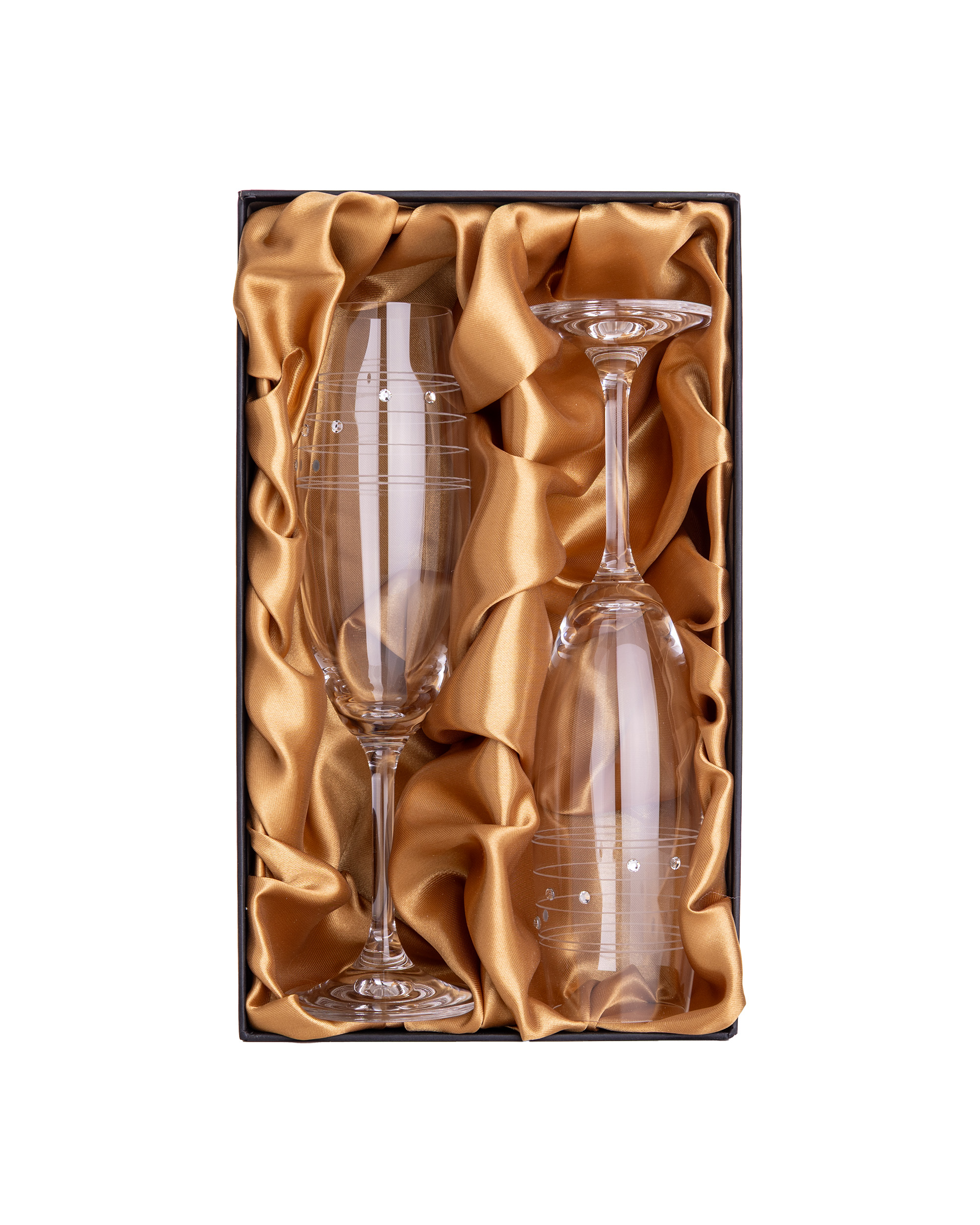 Pro zvýraznění kvality edice Swarowski má vnitřní saténové lůžko zlatou barvu, ostatní ryté sklo má barvu saténu stříbrnou.
