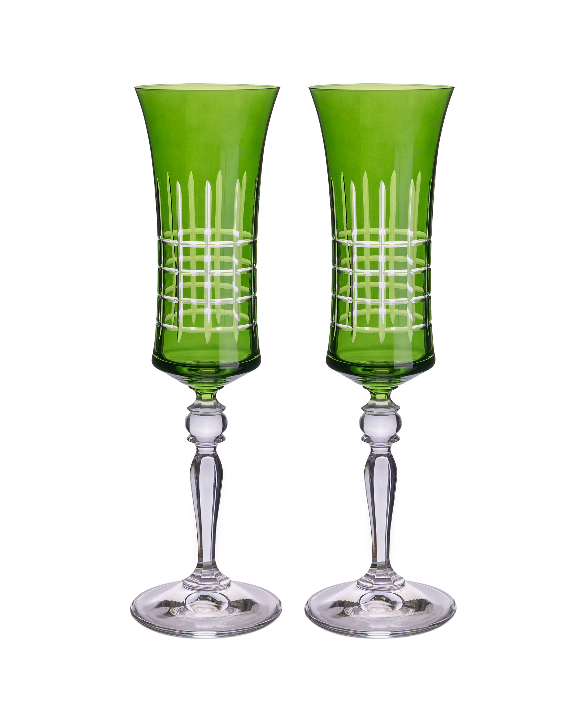 Ručně broušená zelená sklenice na šampaňské