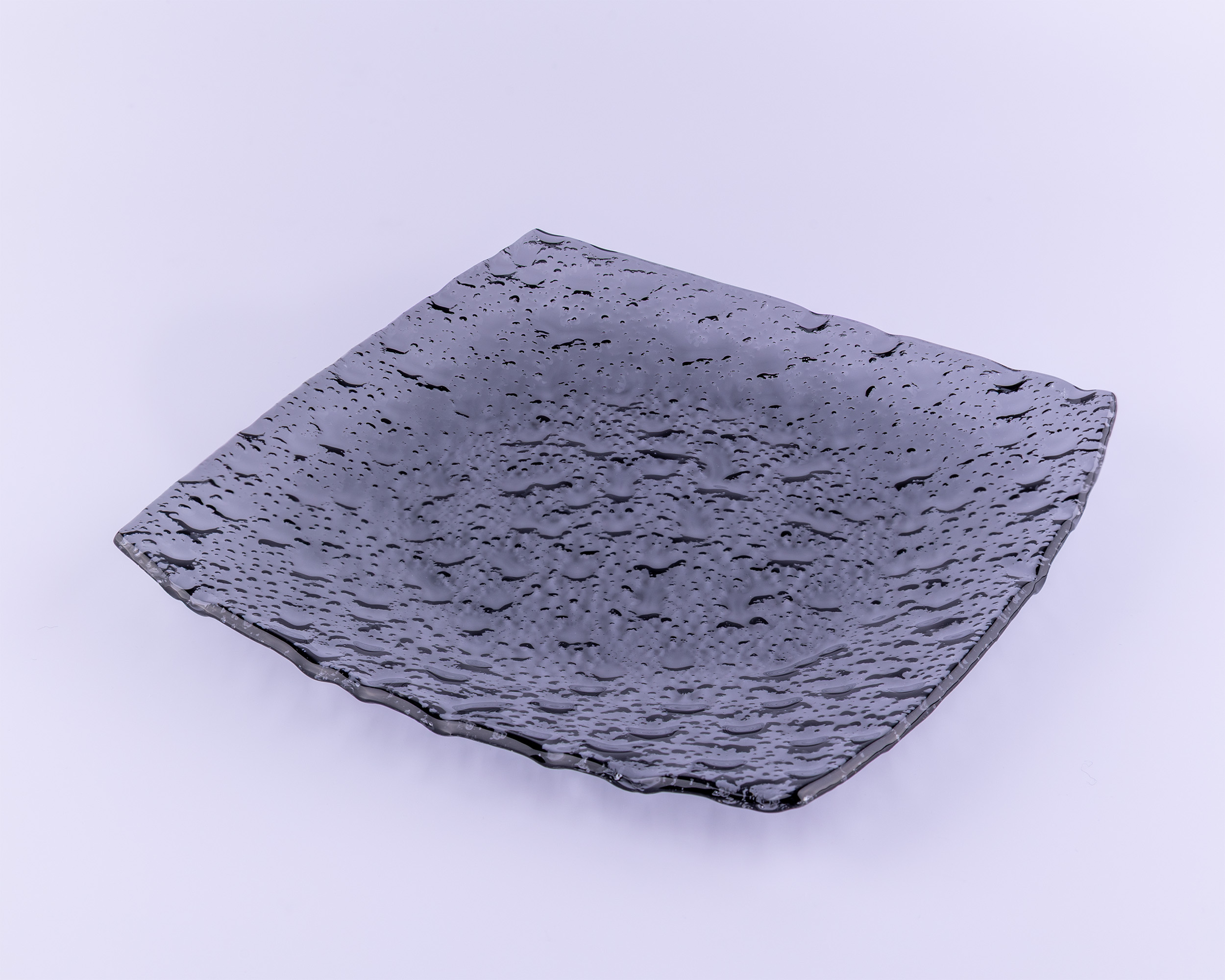 Čtvercový skleněný talíř NATUR MONTI v šedé barvě zaujme svým minimalistickým, přírodou inspirovaným designem a precizní ruční výrobou. Jemná plastická struktura povrchu evokuje reliéfy měsíční krajiny, což dodává každému kusu jedinečný vzhled. Šedý odstín působí elegantně a snadno ladí s různými styly stolování.